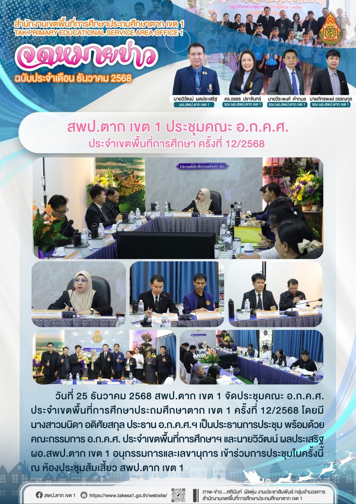 วันที่ 25 ธันวาคม 2568 ได้เข้าร่วมประชุมในฐานะผู้แทนครูในคณะ อ.ก.ค.ศ. ประจำเขตพื้นที่การศึกษาประถมศึกษาตาก เขต 1 ครั้งที่ 12/2568 โดยมี นางสาวมนิดา อดิศัยสกุล ประธาน อ.ก.ค.ศ.ฯ เป็นประธานการประชุม พร้อมด้วยคณะกรรมการ อ.ก.ค.ศ. ประจำเขตพื้นที่การศึกษาฯ และนายวิวัฒน์ ผลประเสริฐ ผอ.สพป.ตาก เขต 1 อนุกรรมการและเลขานุการ เข้าร่วมการประชุมในครั้งนี้ ณ ห้องประชุมส้มเสี้ยว สพป.ตาก เขต 1