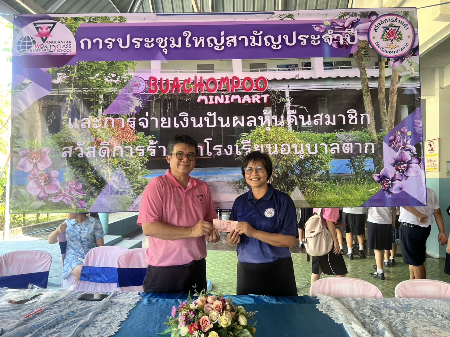 วันที่ 13 มีนาคม 2568 จัดกิจกรรมประชุมใหญ่สามัญประจำปีการศึกษา 2567 โดยได้คืนหุ้นสวัสดิการฯให้กับสมาชิกพร้อมกับจ่ายเงินปันผลในอัตราร้อยละ 20 พร้อมมอบทุนการศึกษาให้กับนักเรียนทุนละ 300 บาทจำนวน 7 ทุน และมอบเสื้อที่ระลึก 80 ปีอนุบาลตาก ในโอกาสที่นักเรียนจบการศึกษา